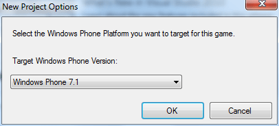 O halde, ilk iş kendimize bir Windows Phone 7 XNA projesi açalım ve versiyon olarak Windows Phone 7.1′i seçelim. Projenin adına AccelerometerGame diyorum.