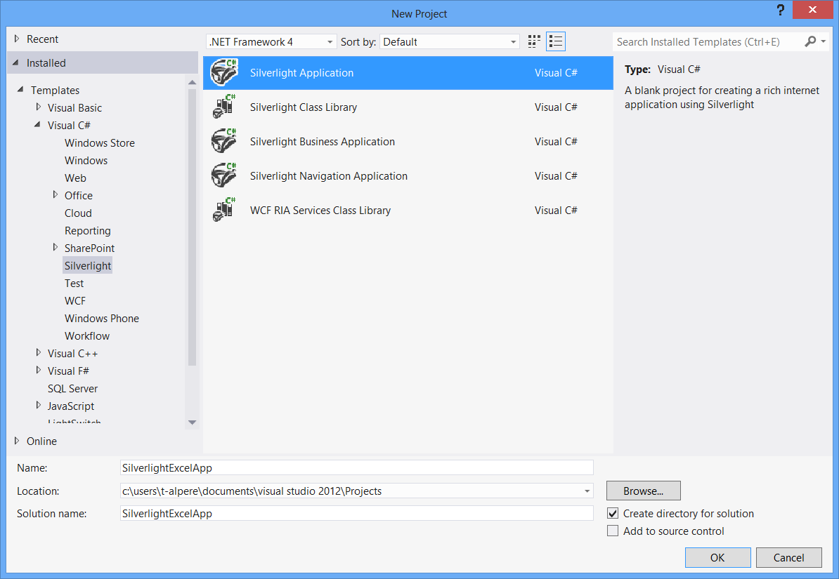 O halde yavaştan uygulamamızı oluşturmaya başlayalım. Uygulamamız, yukarıda verdiğimiz örneklerden biri olan toplu kullanıcı kaydını yapsın. Visual Studio içinden yeni bir Silverlight projesi açalım. Bu arada not olarak, Visual Studio 2012 ve Silverlight 5 kullanıyorum.