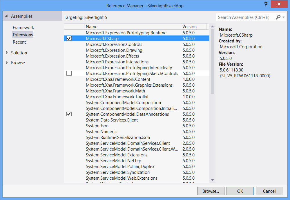 Son olarak System.Runtime.InteropServices.Automation kitaplığını using ile projemize ekleyerek, ve References’a birazdan kullanacağımız “dynamic” değişkenler için gerekli olan Microsoft.CSharp kitaplığını ekleyerek hazırlıklarımızı tamamlayalım.