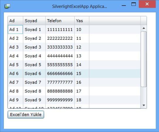 İkincisi, ad, soyad ve telefon string oldukları için doğrudan okundular, ancak yaş bir integer olduğu için Int32.Parse metodunu kullanmamız gerekti. Bu bir deneme uygulaması olduğu için sorun olmaz, ancak o hücrede integer olamayacak bir değer olursa uygulamamız çalışma zamanında çöker. Bu nedenle, veri okurken mutlaka doğrulama yapmamız gerekli.