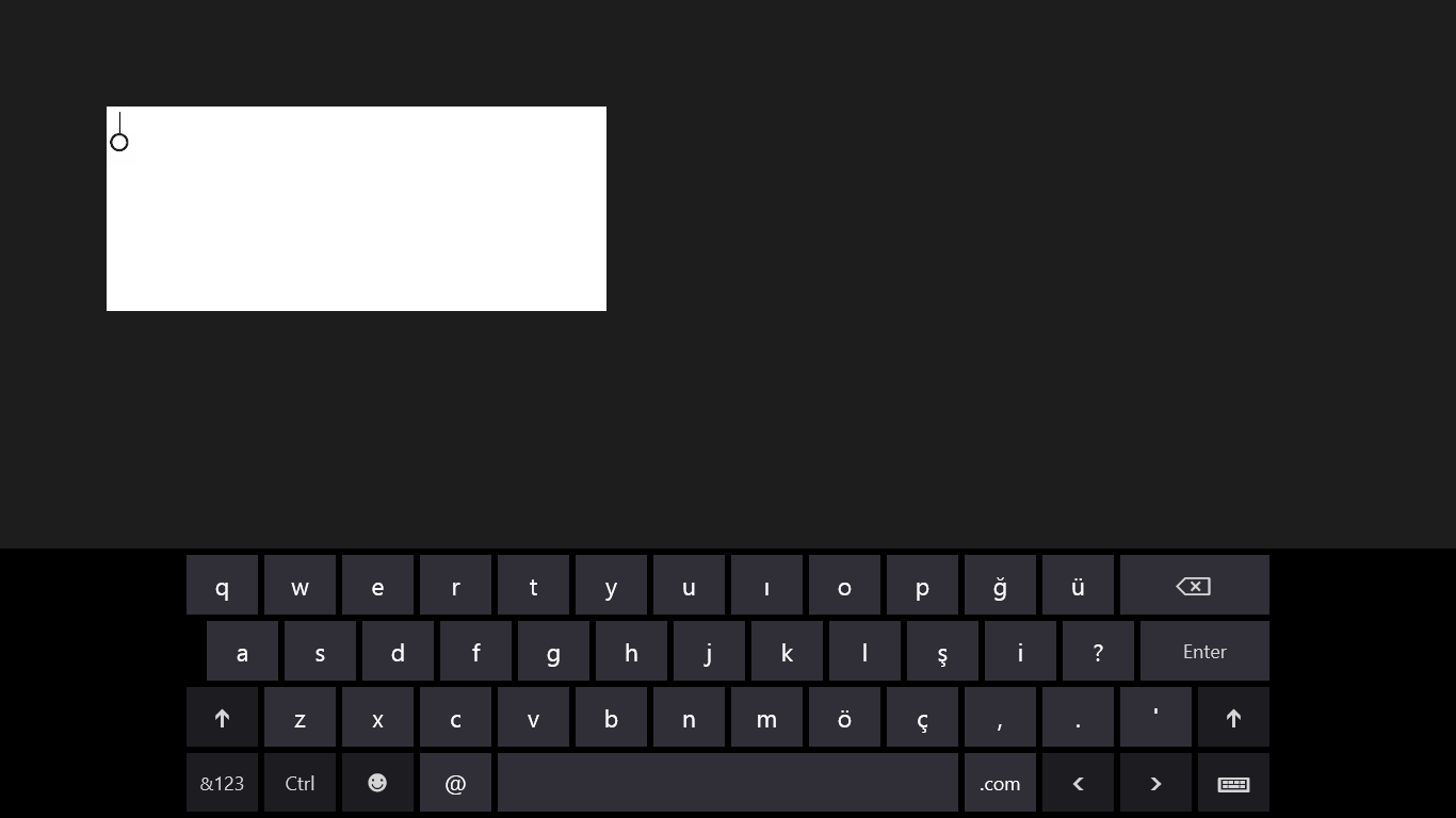 The default touch keyboard when InputScope is set to EmailSmtpAddress (notice the @ symbol added near spacebar).